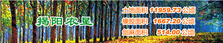 廣東省揭陽農(nóng)墾集團(tuán)有限公司(農(nóng)墾局)下轄6個(gè)農(nóng)場有限公司。墾區(qū)管轄26個(gè)代管村,現(xiàn)有總?cè)丝?.11萬人,墾區(qū)土地面積17.77萬畝,目前種植天然橡膠3.13萬畝,水果 2.57萬畝,光伏農(nóng)業(yè)0.8萬畝,并探索發(fā)展一批特色產(chǎn)業(yè)等。